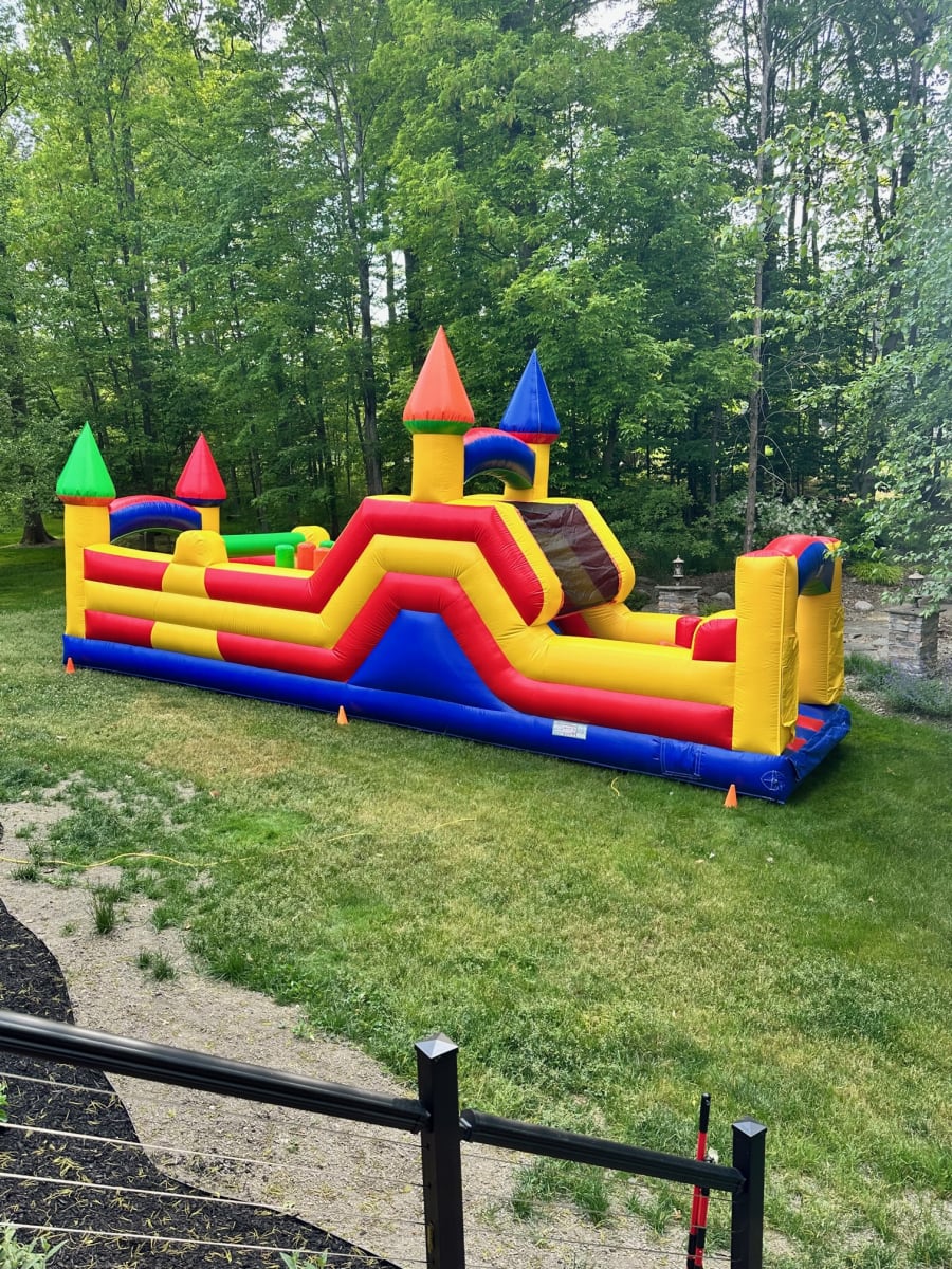 OUR OBSTACLE COURSE IS DESIGNED FOR A FUN CHALLENGING ATTRACTION FOR BIRTHDAY PARTIES, GRADUATION PARTIES OR JUST A SUMMER GET TOGETHER. THE OBSTACLE COURSE CAN ALSO BE PAIRED WITH THE CASTLE COMBO TO CREATE A 70FT ATTRACTION THAT WILL TURN HEADS.