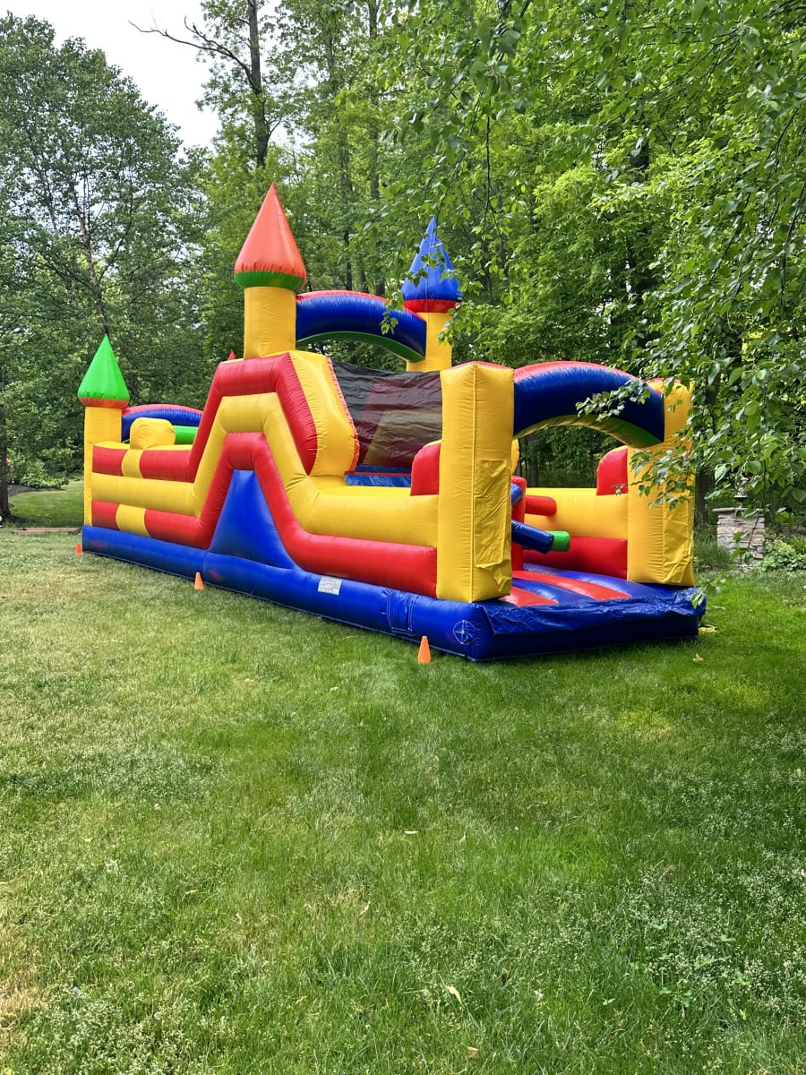OUR OBSTACLE COURSE IS DESIGNED FOR A FUN CHALLENGING ATTRACTION FOR BIRTHDAY PARTIES, GRADUATION PARTIES OR JUST A SUMMER GET TOGETHER. THE OBSTACLE COURSE CAN ALSO BE PAIRED WITH THE CASTLE COMBO TO CREATE A 70FT ATTRACTION THAT WILL TURN HEADS.