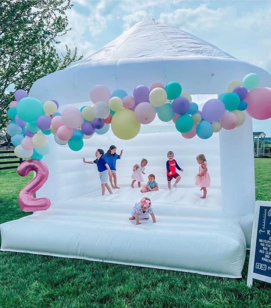 OUR WHITE DOME BOUNCE HOUSE IS GREAT FOR WEDDINGS,GENDER REVEALS,PHOTO SHOOTS AND KIDS BIRTHDAY PARTIES.