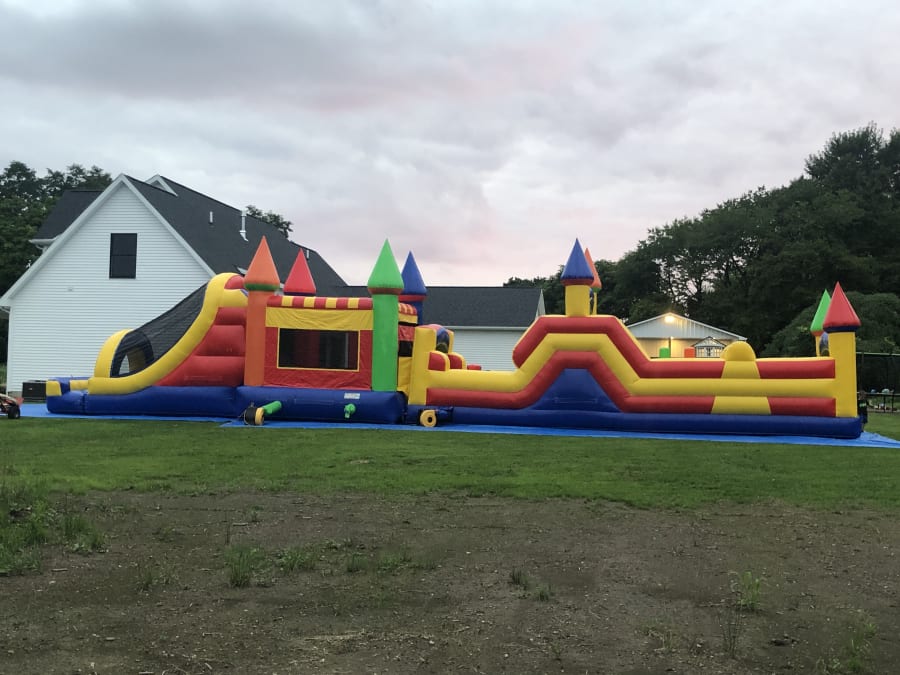 OUR OBSTACLE COURSE IS DESIGNED FOR A FUN CHALLENGING ATTRACTION FOR BIRTHDAY PARTIES, GRADUATION PARTIES OR JUST A SUMMER GET TOGETHER. THE OBSTACLE COURSE CAN ALSO BE PAIRED WITH THE CASTLE COMBO TO CREATE A 70FT ATTRACTION THAT WILL TURN HEADS.